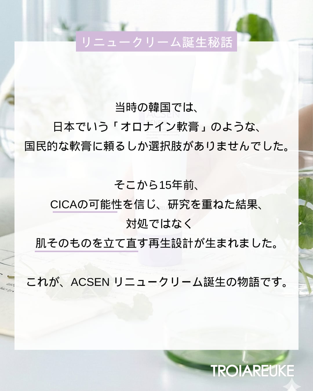 ACSEN リニュークリームは、肌をすこやかな状態へ導くために設計された高保湿クリームです。